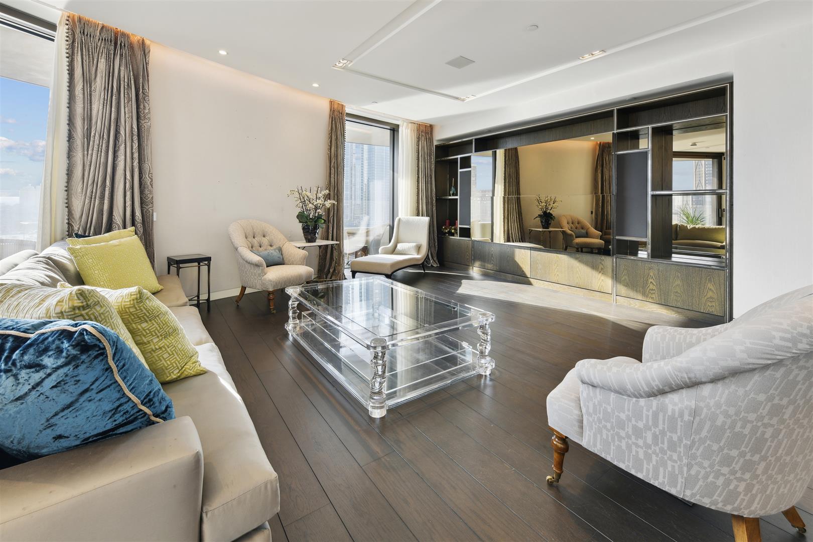 An exceptional 3-bedroom, 4-bathroom apartment located within one of the most prestigious riverside developments on the Thames. Spanning 1,925 sq ft (179 sq m), the apartment offers direct river views, expansive living and entertaining spaces, and a high-end interior specification throughout.