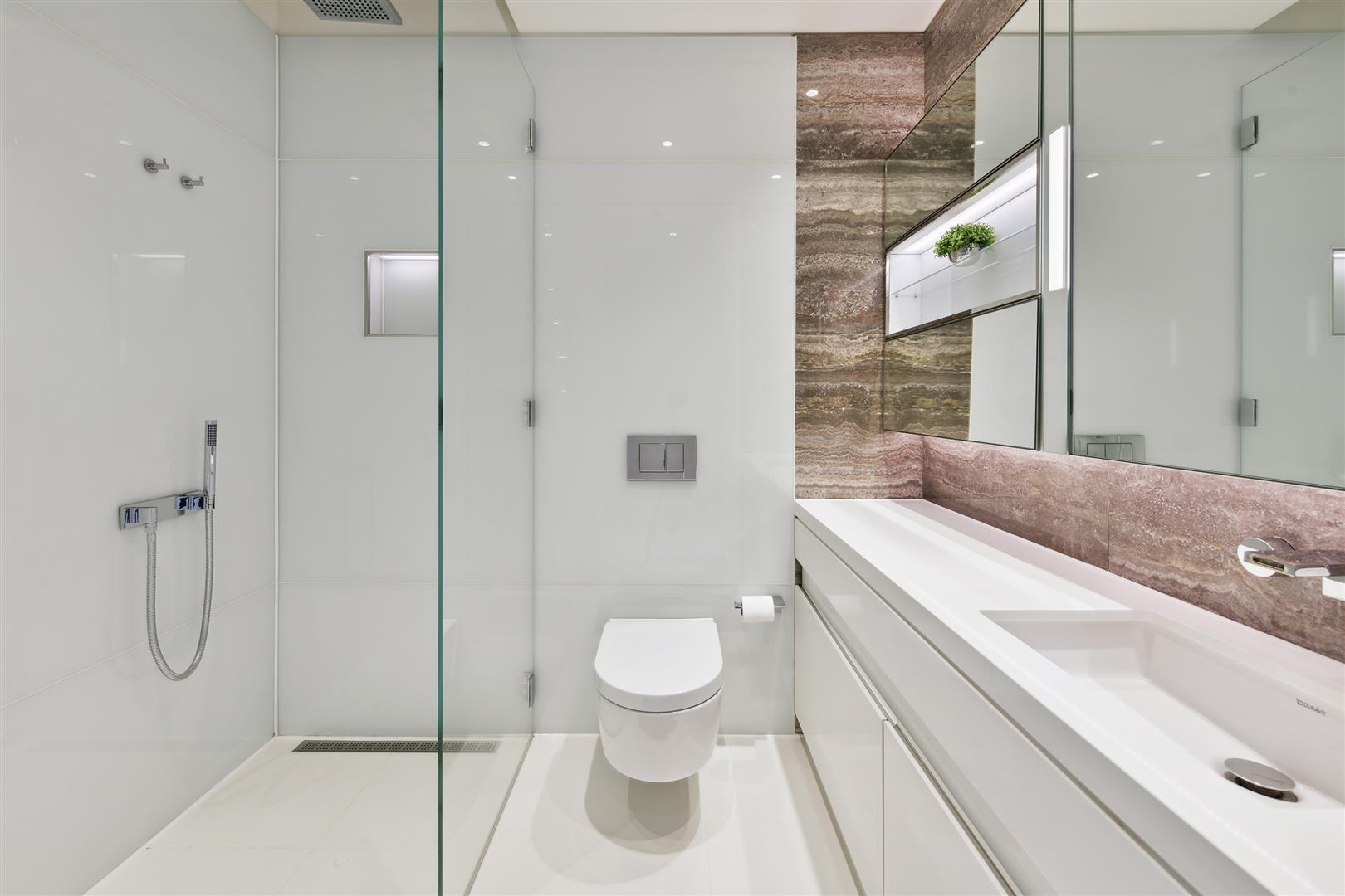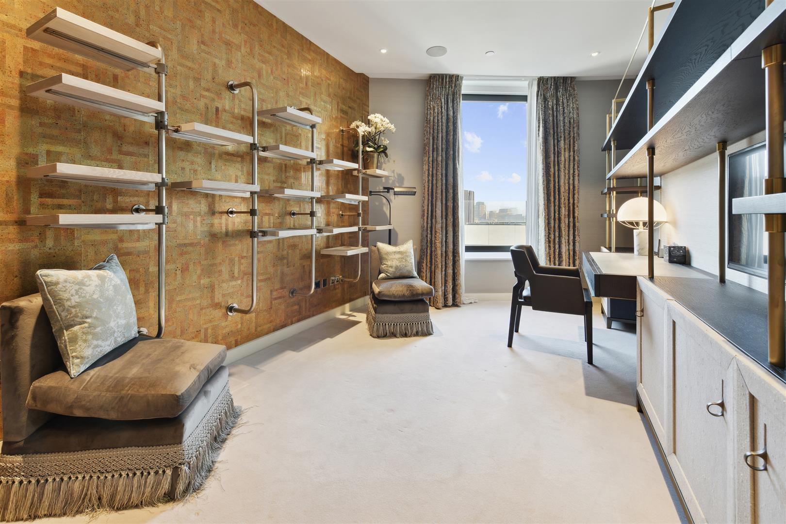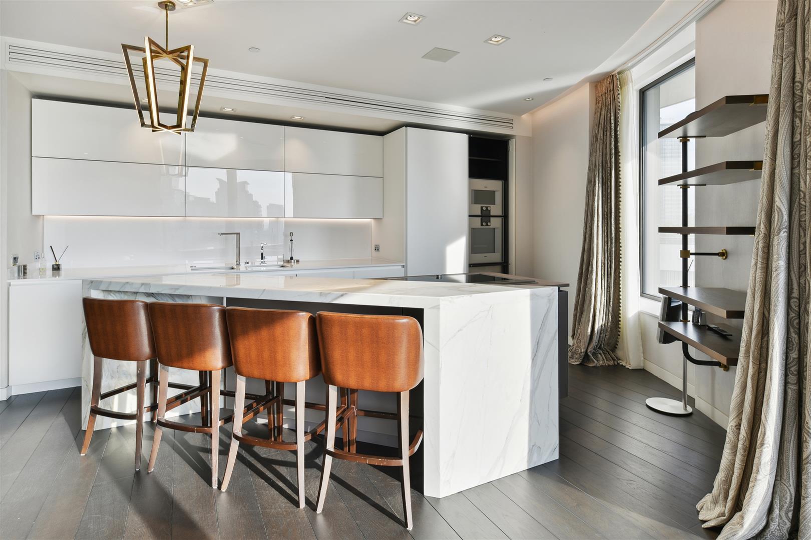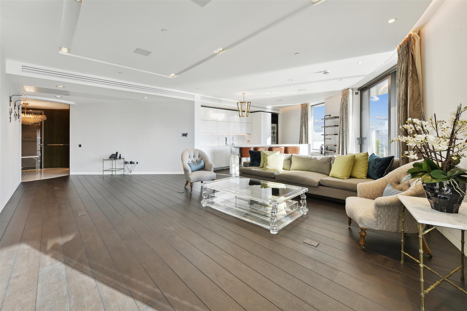 A standout feature is the rarely available 46 ft private terrace, which stretches across the reception room and principal bedroom, offering panoramic views from the 7th floor. The open-plan Boffi designer kitchen is fitted with top-tier Gaggenau and Miele appliances, perfect for both everyday living and hosting.